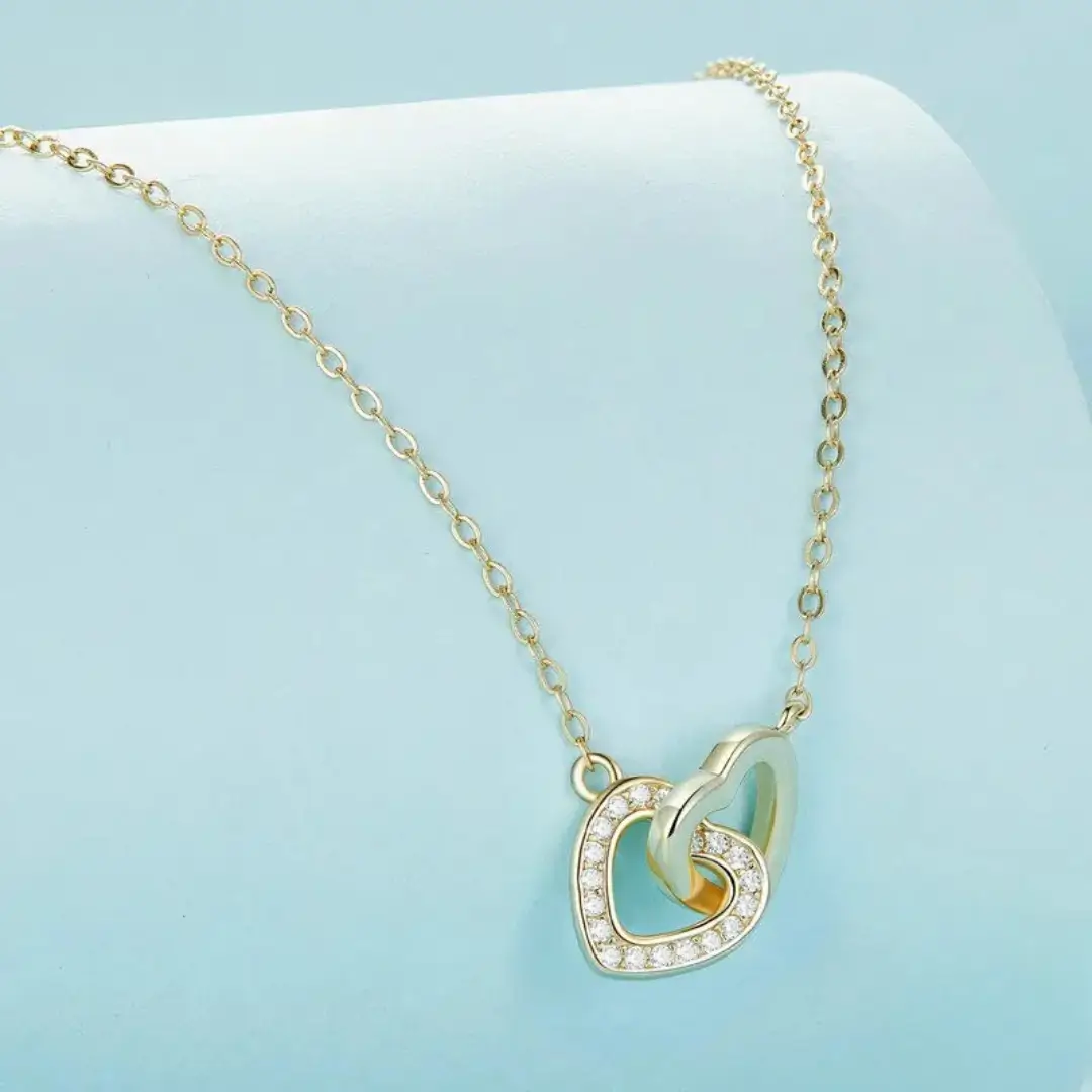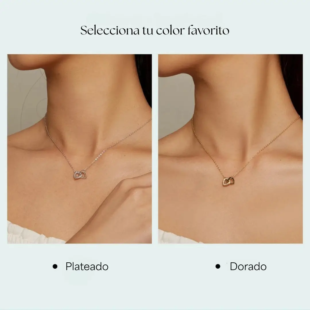 El Collar “Dos Corazones, Un Latido” celebra la unión perfecta entre dos almas. Su diseño con colgante de corazones entrelazados simboliza el amor, la complicidad y la conexión que perdura con el tiempo.