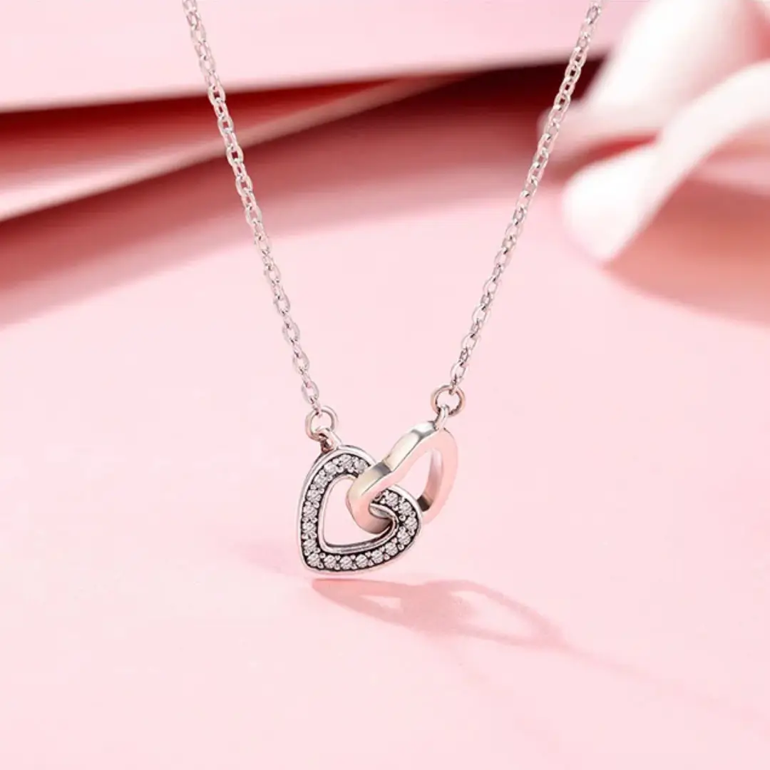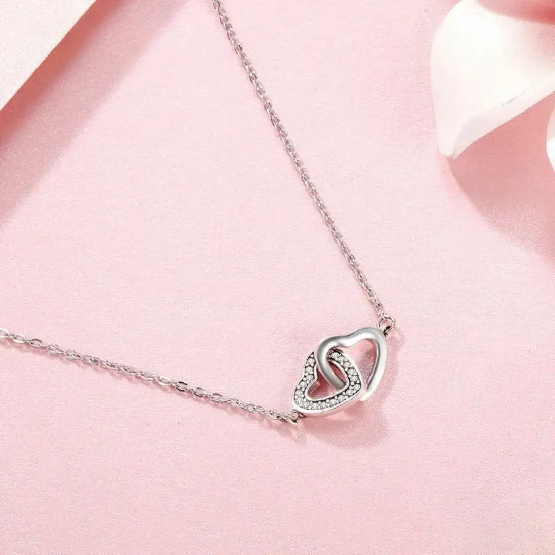 1 valoración en Collar “Dos Corazones, Un Latido” de Plata de Ley 925 | Joyería Fina con Colgante de Corazón Conectado para Mujer
