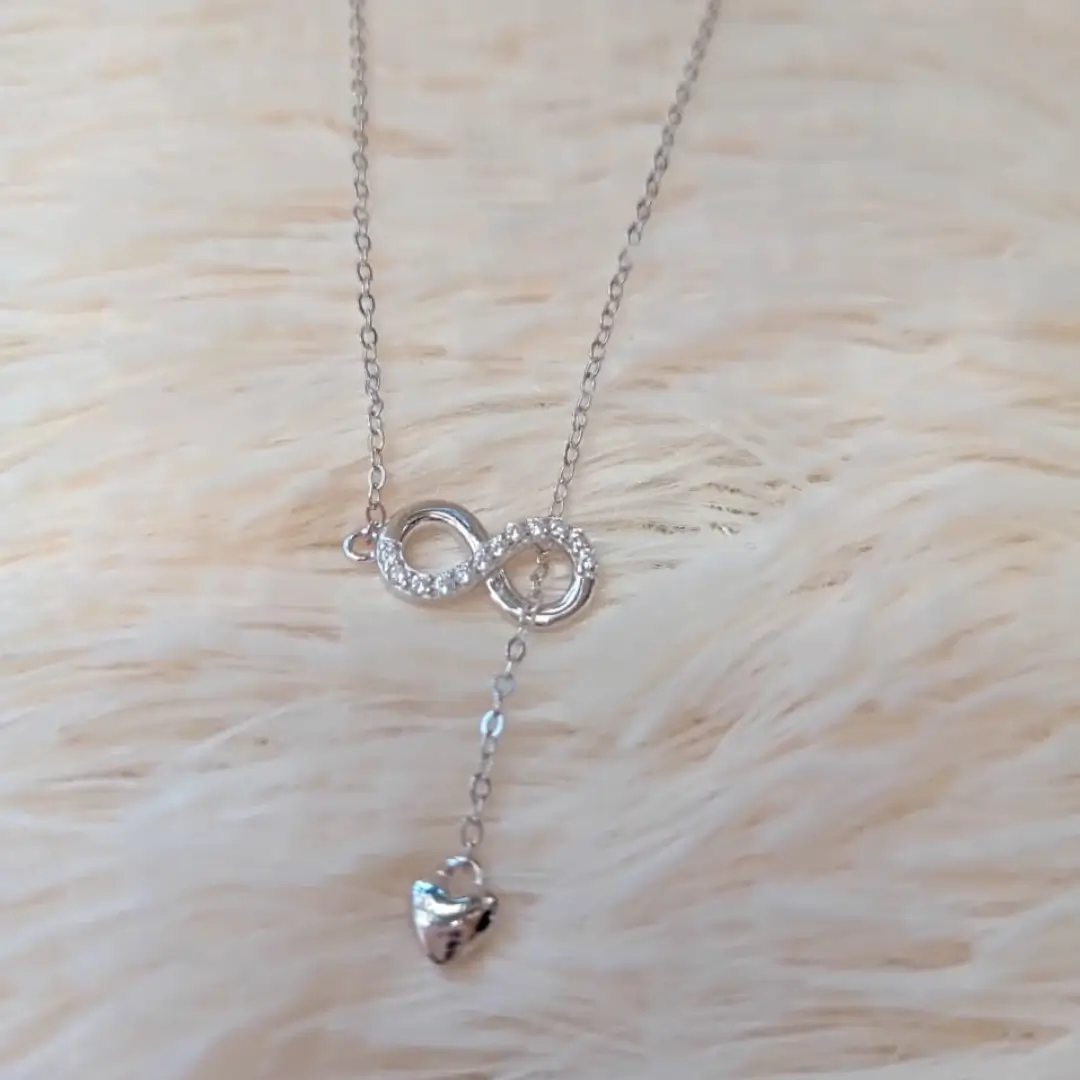 Descubre el collar infinito en Plata 925 con circonita, símbolo de amor eterno. Viene con elegante bolsa de regalo. Ideal para sorprender a mamá, hijas o amigas.