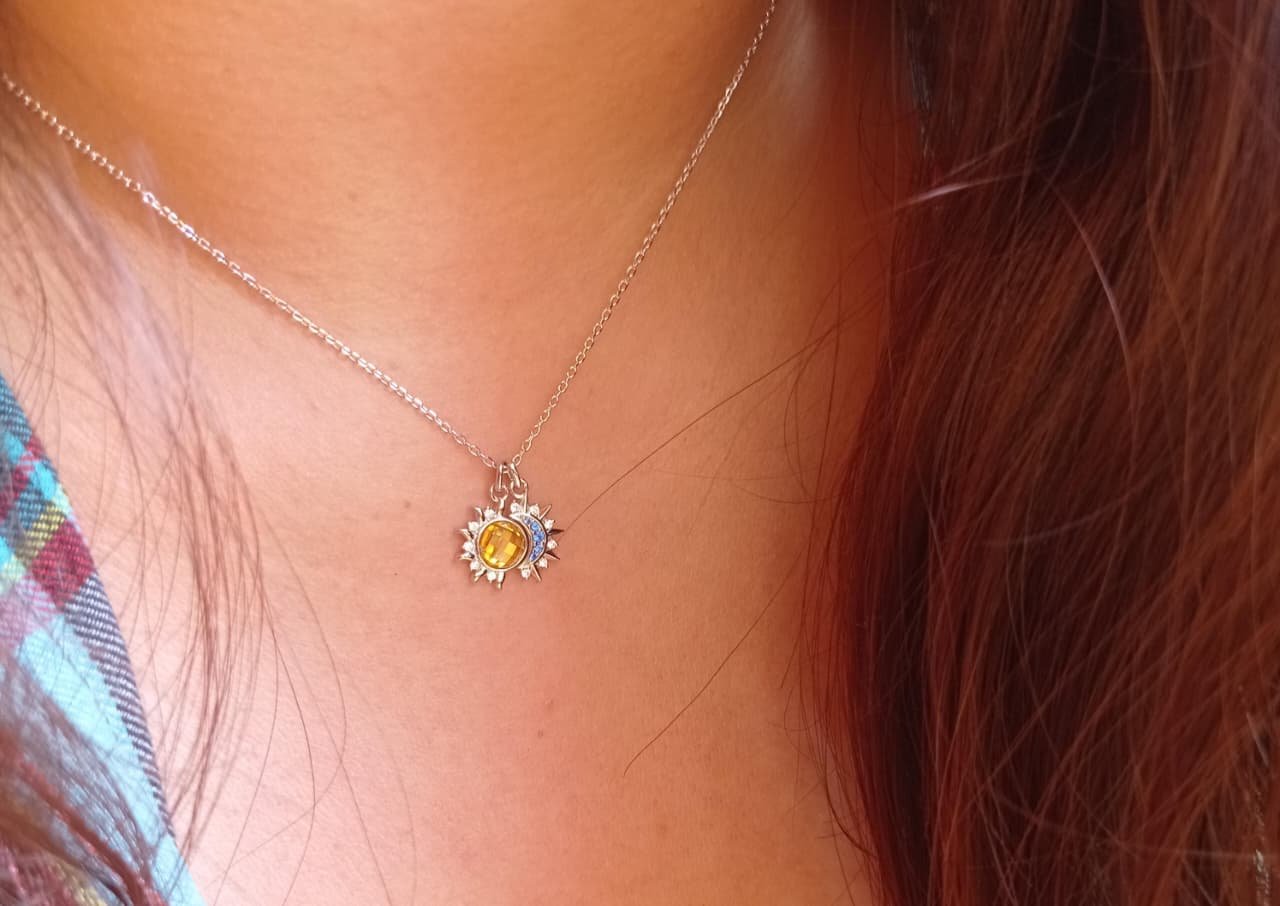 Este elegante collar de sol y luna en plata de ley 925, chapado en oro blanco, simboliza la energía, la compañía y la protección. Un diseño delicado y lleno de significado, ideal para mujeres que buscan joyas con intención.