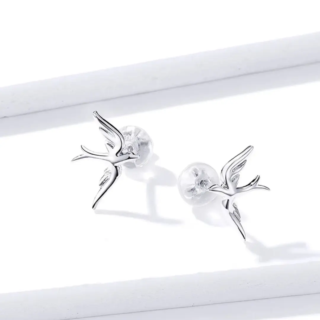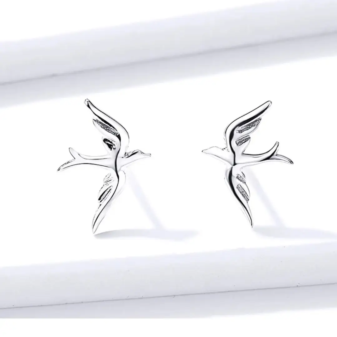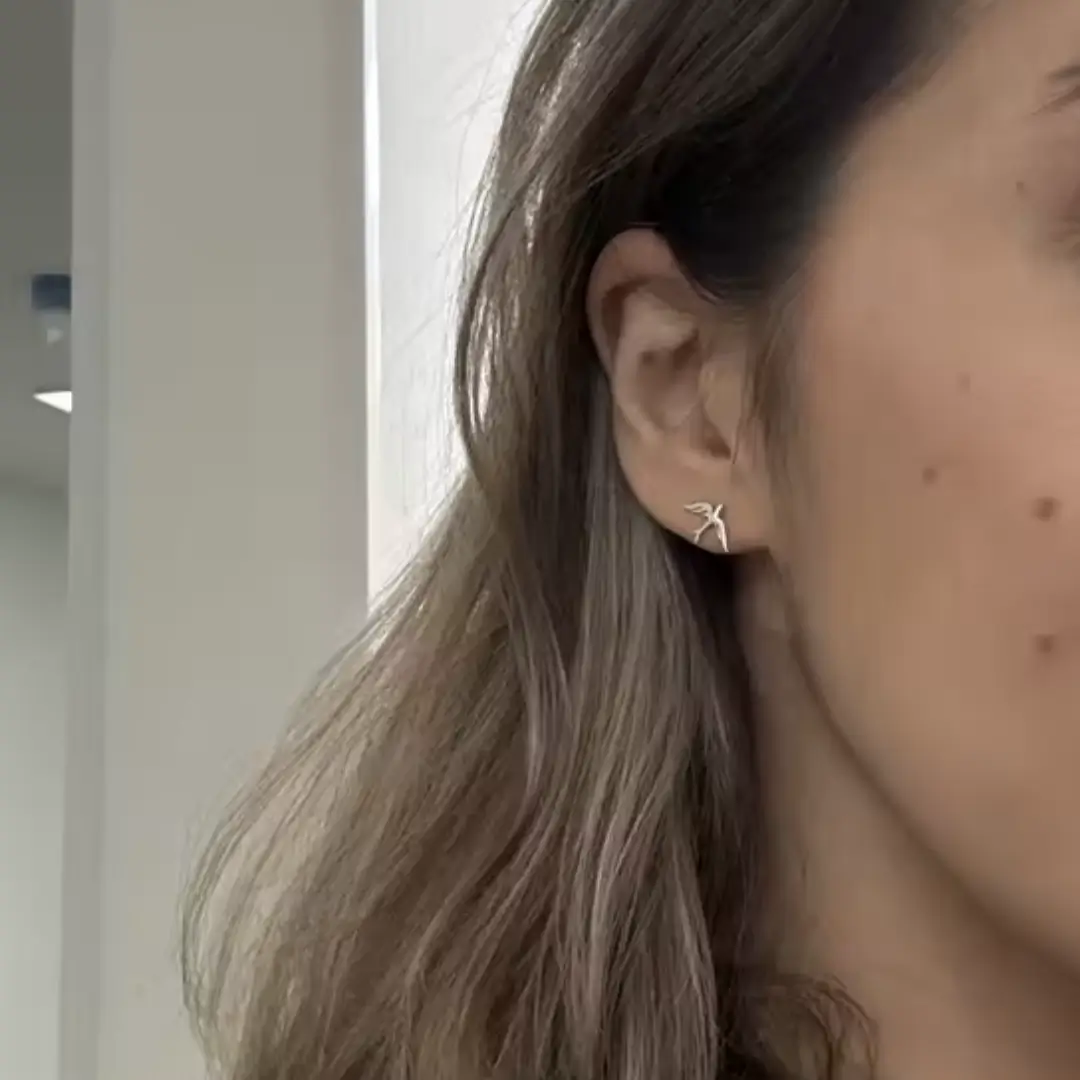 Ligeros, delicados y llenos de significado. Estos pendientes en Plata de Ley 925 presentan la silueta de una golondrina en pleno vuelo, símbolo universal de libertad, esperanza y nuevos comienzos.