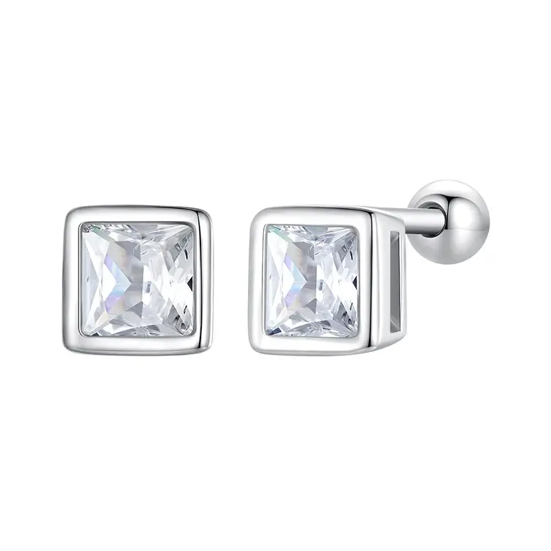 Pendientes de Plata 925 con Circonia Cúbica | Aretes Pequeños Tipo Princesa Chapados en Platino