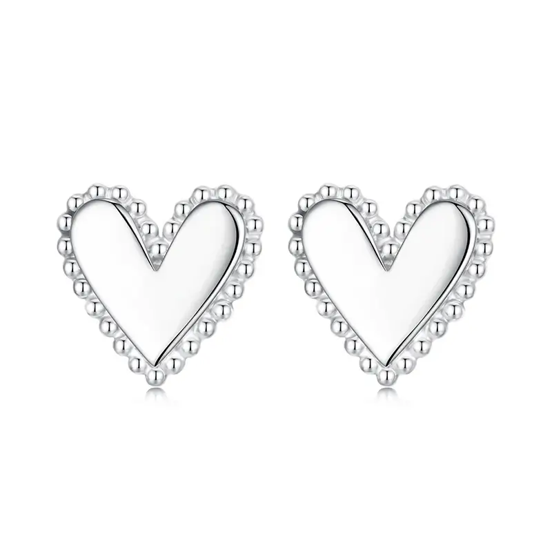 Delicados, románticos y perfectos para el día a día. Estos pendientes en forma de corazón con borde perlado en Plata de Ley 925 combinan un diseño minimalista con un toque femenino que ilumina cualquier look.