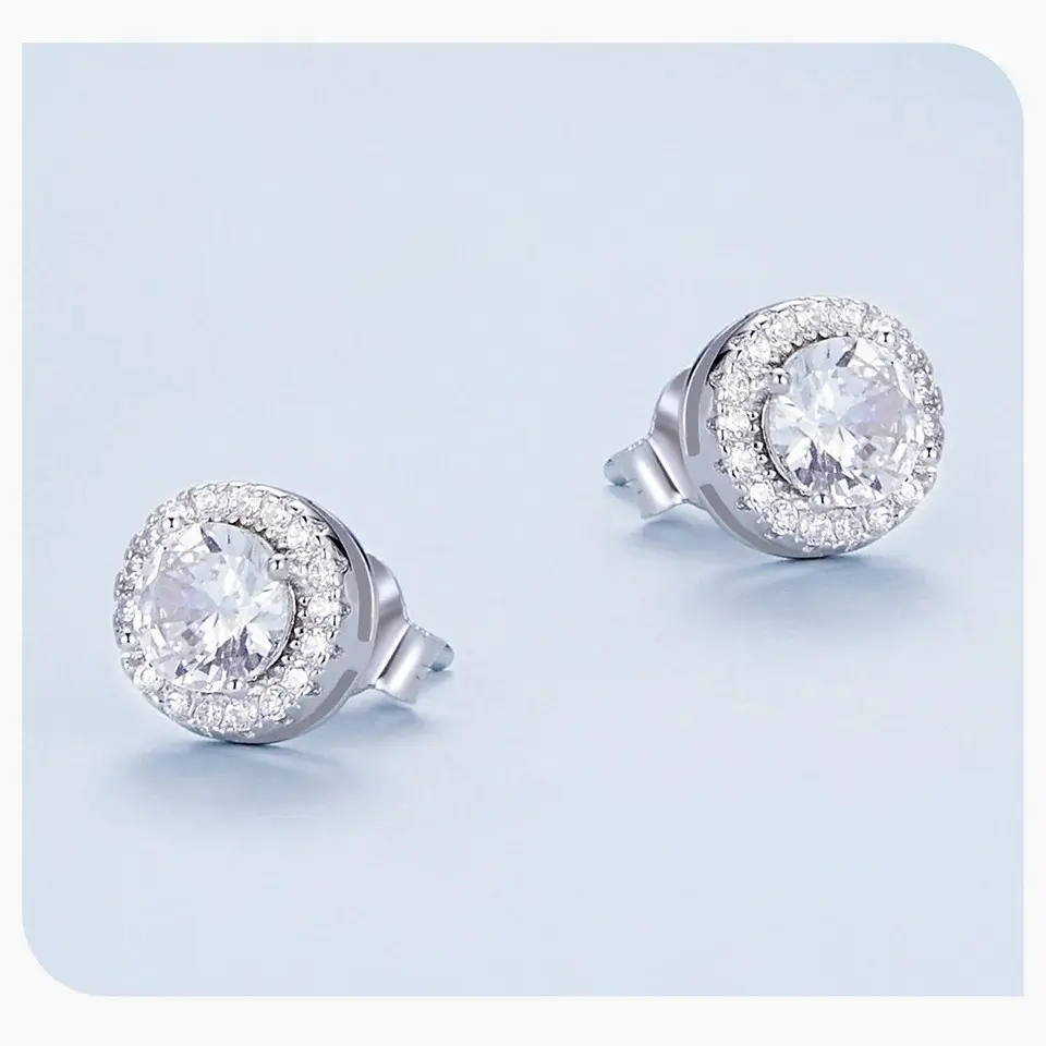 Descubre el brillo atemporal con nuestros pendientes redondos de Plata de Ley 925. Cada pieza está engastada con una brillante circonita cúbica en corte redondo, rodeada por un halo de piedras pequeñas que reflejan la luz desde todos los ángulos. Disponibles en chapado en platino o en oro, son el toque perfecto para elevar cualquier look, desde casual hasta formal. Cómodos, hipoalergénicos y resistentes al uso diario.