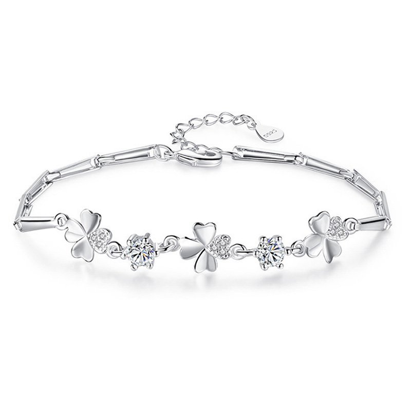 Pulsera de Plata 925 con Tréboles y Cristales Brillantes